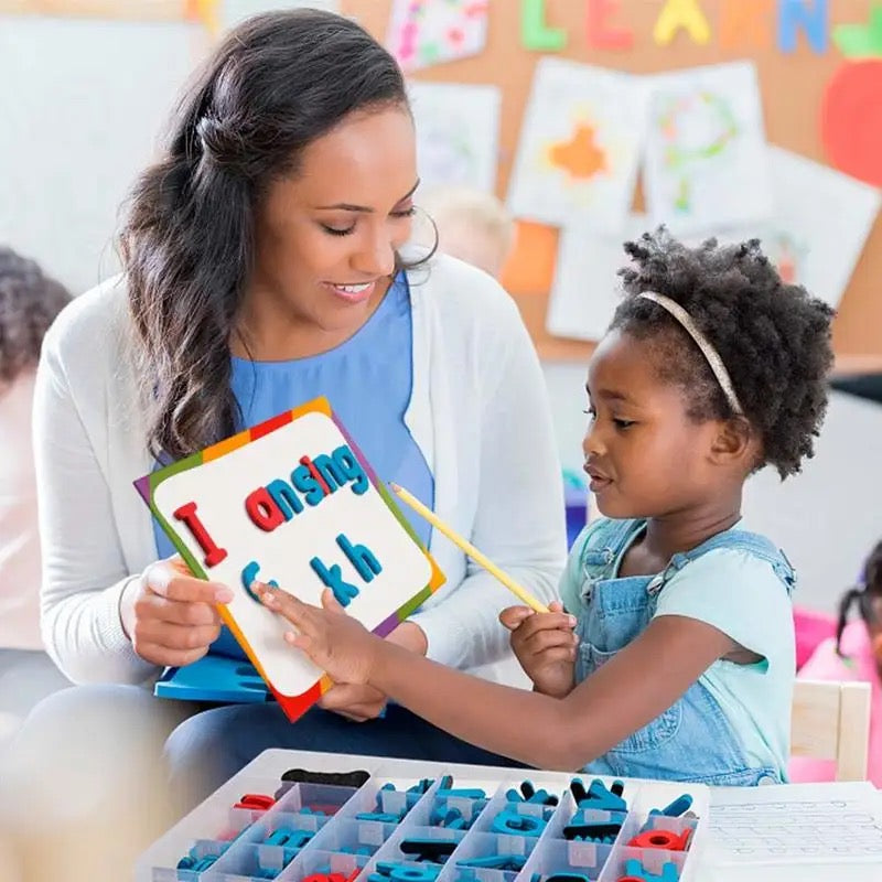 يمكن للطفل تكوين جميع الكلمات الانجليزية لكل حرف ٢كابيتل و٢ سمول
